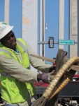 Elliott Fulton of the South Carolina DOT District 5 Bridge Crew constructs a temporary bridge on 52nd Avenue in North Myrtle Beach. When completed, the structure will be put in place by a series of rollers and a crane. Temporary bridges work well to replace smaller bridges quickly until permanent bridges can be built.