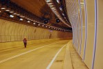 A construction worker enters the Port of Miami Tunnel after its grand opening event on Monday, May 19, 2014.