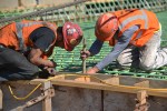 Contractors at work with the rebar on a replacement bridge along Highway 31 in South Central North Dakota near the Standing Rock Indian Reservation.