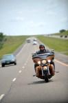 North Dakota DOT employee, Adam Kuntz, wears proper safety gear when rides his motorcycle on US 83 north of Bismarck.