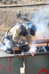 A worker on the Carlin Tunnels Project near Elko, Nevada melds together the bridge of yesterday to the bridge of tomorrow. The approximately $31 million project will enhance and retrofit eight I-80 bridges, four directly on each side of the tunnels and four to the east of the tunnels.