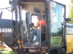 Each year the Oklahoma DOT Civil Rights Office and the AOGC sponsor a Construction Career Day. Last year the event took place on September 20, 2013, at Oklahoma State University/Oklahoma City Campus. Over 200 students from five Oklahoma City high schools participated in this event. Students rotate through four sessions: Employment Skills, Career Booths, Hands-On Activities, and Heavy Highway Construction Equipment. Pictured in Anthony Delce at the controls of his motorgrader.)