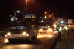 The glare from workers and a paving train light up the sky on Interstate 24 in downtown Nashville, Tennessee.