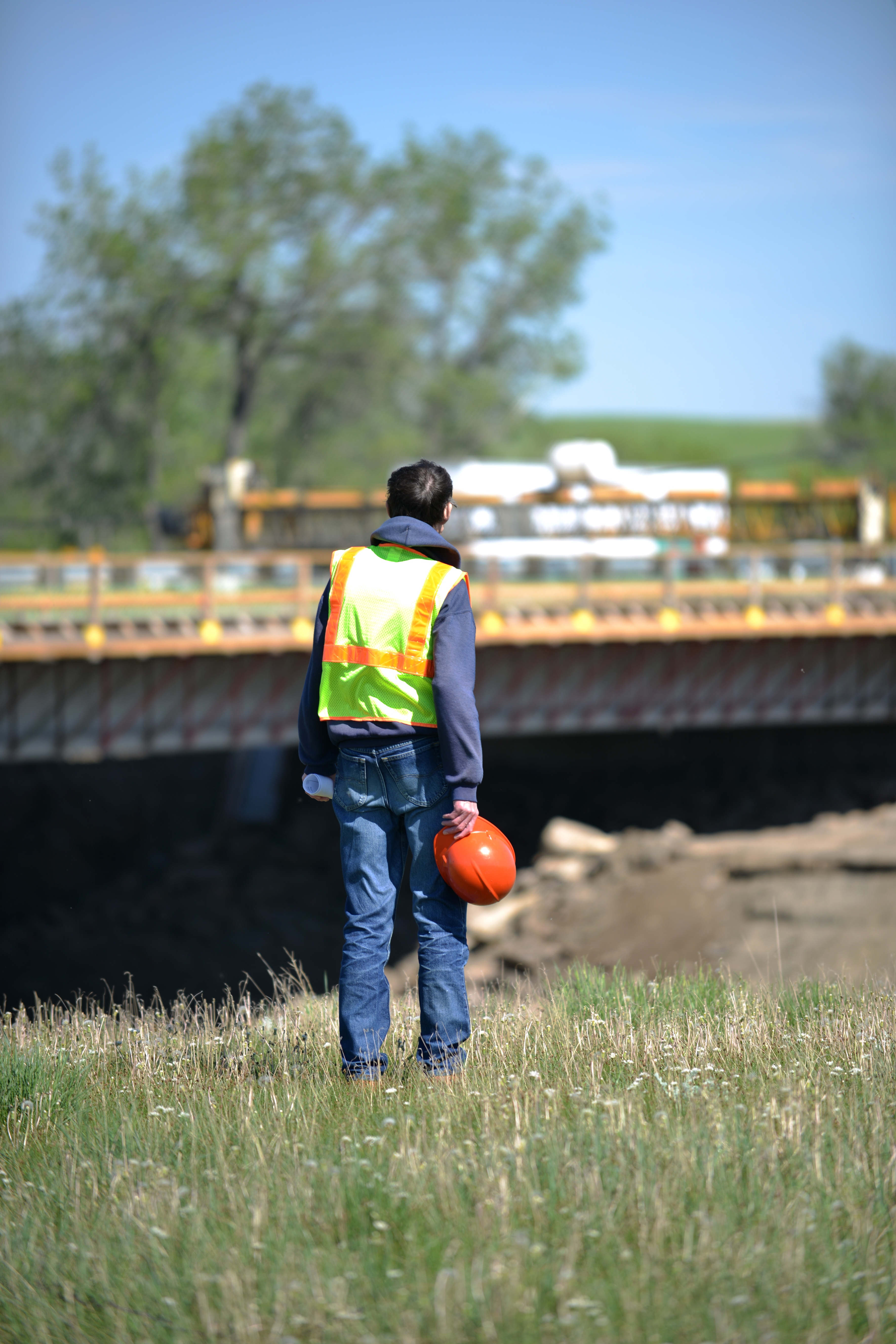 Dwayne Sticka observes the construction on a replacement bridge along Highway 31 in South Central North Dakota nearthe South Dakota Border and the Standing Rock Indian Reservation.