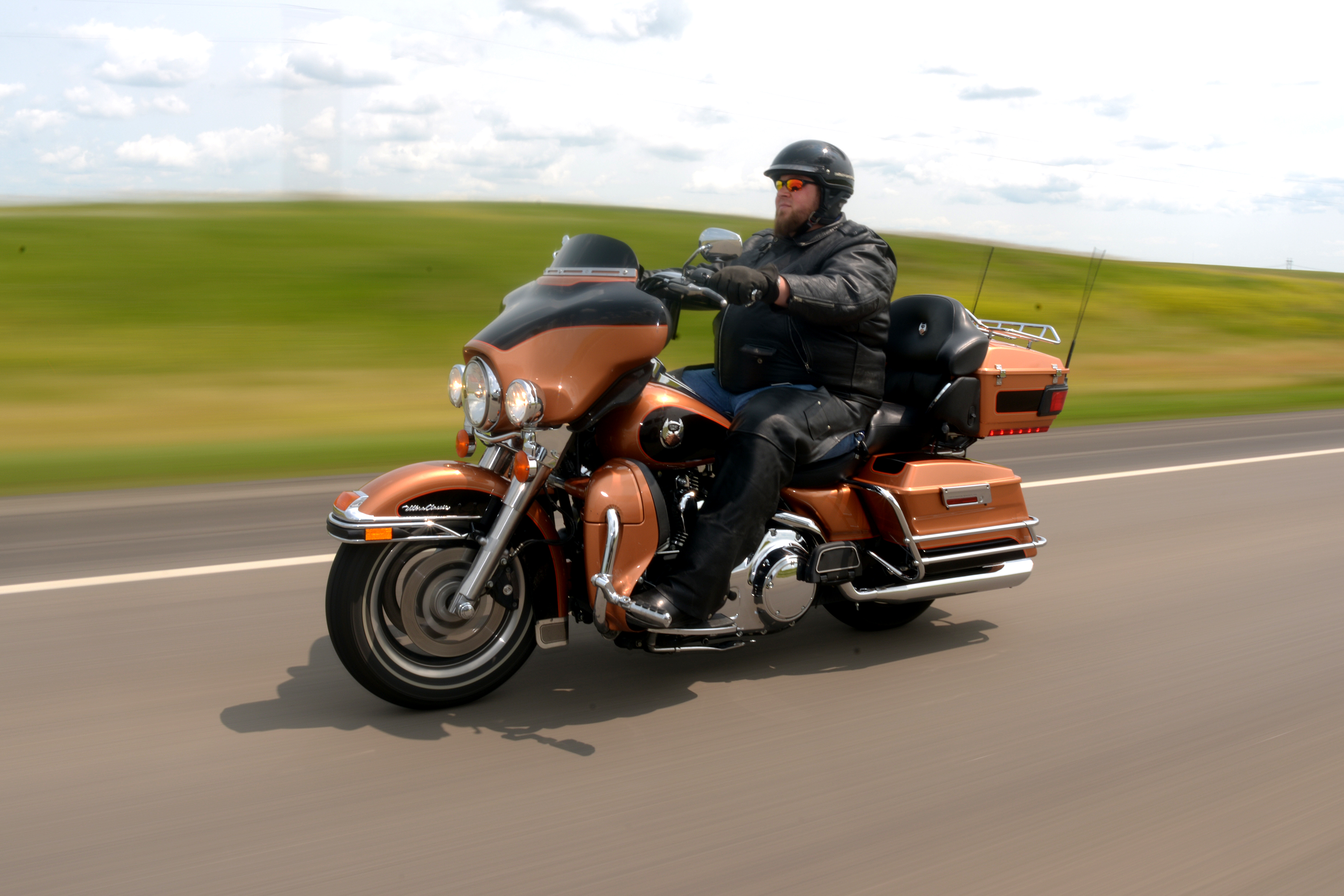 NDDOT employee Adam Kuntz safely rides his motorcycle from Bismarck to Wilton on Highway 83. He proudly sports safety gear including a helmet and leather gloves, jacket, chaps, and boots.