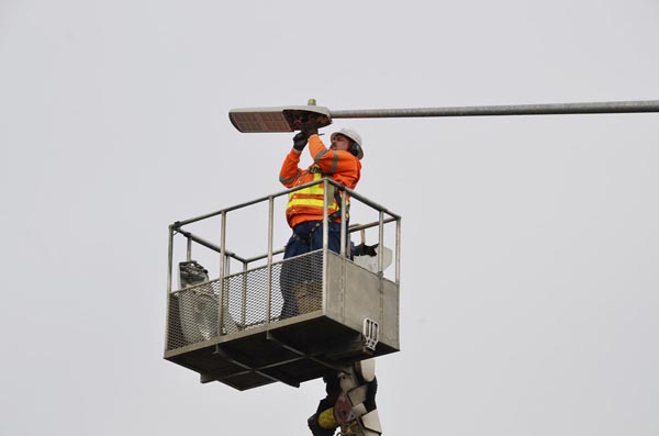 WSDOT’s Tom Knowlton installed the first LED lights in Washington state. Just days later, Olympia drivers saw the road in a whole new light. WSDOT expects the 88-light LED system to last 15 years, reduce energy usage by 1.7 million kilowatt hours of electricity and save $75,000.