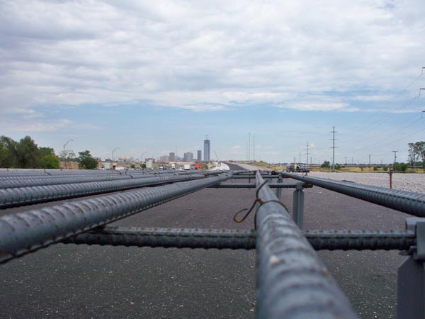 Reinforced steel is laid out along this stretch of I-40 in Oklahoma City. This section of I-40 stretches from May Ave. 2.5 miles east to Western Ave. into the heart of downtown Oklahoma City.