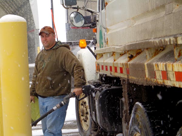 Chad Dial of Holmes County in Ohio is refueling an Ohio Department of Transportation snowplow during a winter event in February 2013. He is one of the many at ODOT who work around the clock in cold weather to keep Ohio highways safe during the snow and ice season.